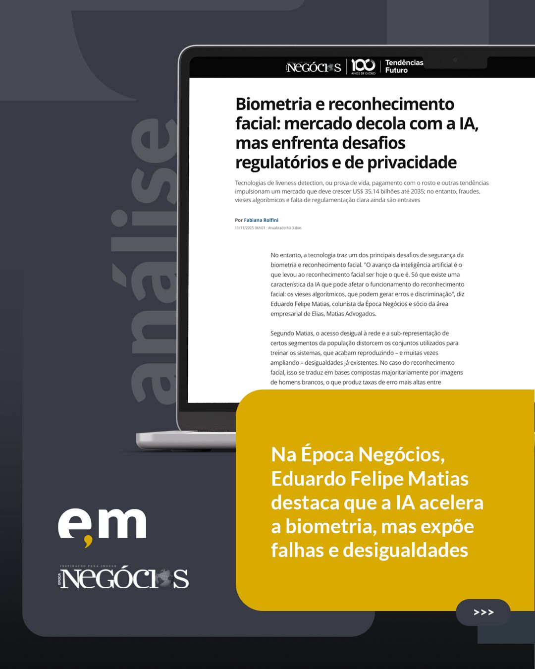 Em entrevista à Época NEGÓCIOS, Eduardo Felipe Matias analisou os principais desafios do uso de biometria e reconhecimento facial no Brasil. A matéria aborda vieses algorítmicos, impactos da falta de regulamentação específica e os riscos para a privacidade e segurança dos usuários, ressaltando a necessidade de critérios técnicos mais robustos e diretrizes claras.